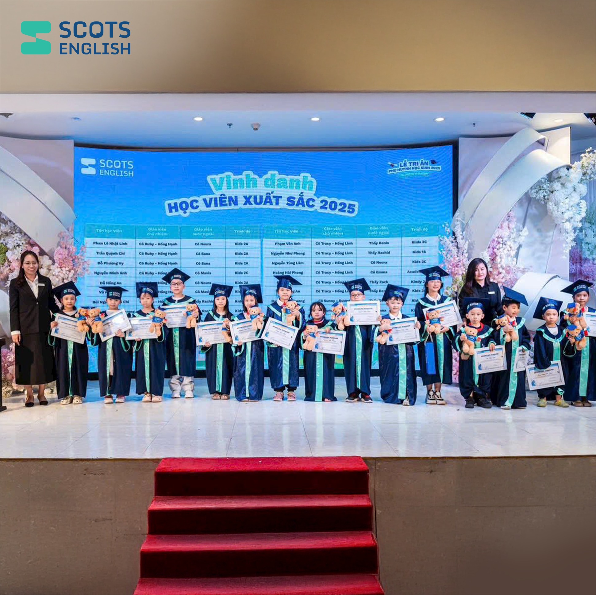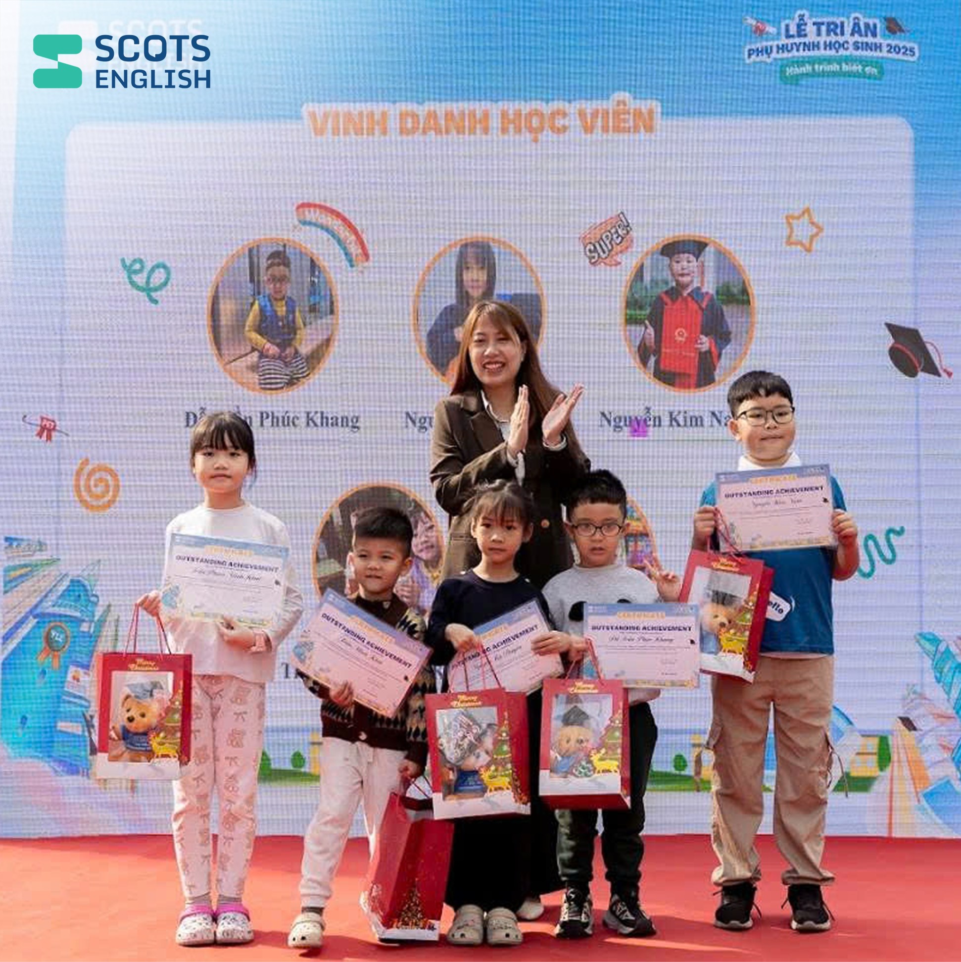 Tháng 12/2025, hơn 40 chi nhánh Scots English tổ chức chương trình “Lễ Tri Ân - Phụ huynh Học sinh năm 2025” với chủ đề “Hành trình biết ơn”, tạo không gian kết nối ý nghĩa để tri ân phụ huynh, tôn vinh nỗ lực học sinh và hành trình giáo dục suốt năm qua.