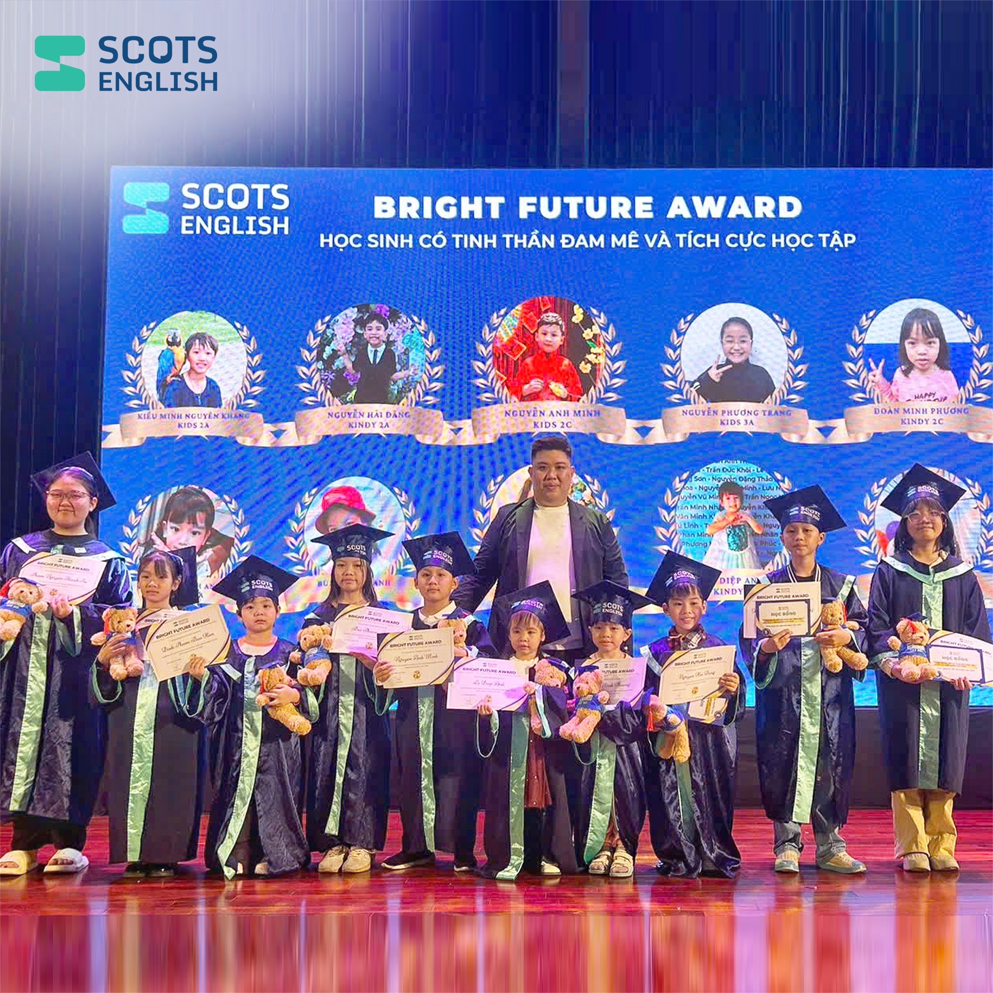 Để mỗi học viên được tỏa sáng, sự đồng hành của phụ huynh và tâm huyết của đội ngũ giáo viên đóng vai trò then chốt. Scots English luôn cam kết duy trì chất lượng giảng dạy, phương pháp lấy học sinh làm trung tâm và không ngừng nâng cao trải nghiệm học tập. Mỗi tiết học là một hành trình khám phá, mỗi sự kiện là cơ hội để con thể hiện mình.